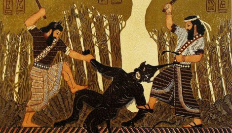 Gilgamesh and Enkidu Slaying Humbaba by Wael Tarabieh, 1996.If the dead skin from our hands are sifted,