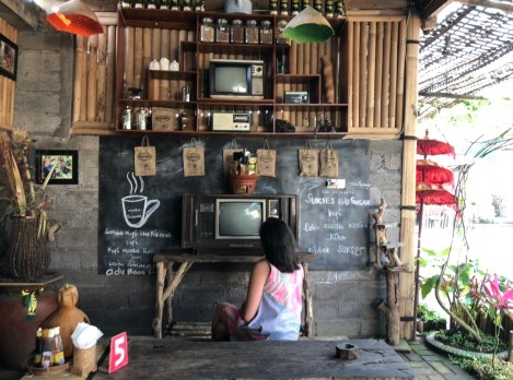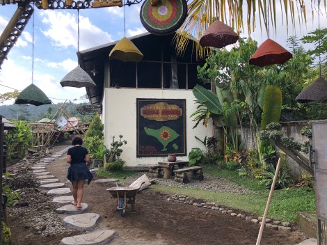 The vivid paintwork of the area created a strong contrast against the green foliage. I was so confused – the coffee I was sipping and brown sugar chunks I was suckling were utterly Balinese, grown right there on the highlands. The gamelan music played along with the aroma, whilst the rugged woodwork in the area made me feel like I was in sweet 60s Indonesia. Except I’d look up and see “Bilbo’s Hut” scrawled on the little hobbit houses and feel completely displaced again. I feel like a Disney character, as if I was in a make-believe world, transcending beyond the physical make-believe world in front of me. I am not signing on. This new prism is fascinatingly disconnecting, but also soberly real. Reality is so disconcerting, but so much funnier than whatever my brain can think of. A Hollywood hobbit town in the middle of rural Indonesia. You’re kidding me, universe.