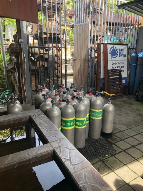 Seeing the lineup of oxygen tanks in Bali Reef Divers was comforting. Purposeful. And the dives were some of the best I’ve had, chockful of looming coral fans and neon colored marine life. I enjoyed the nice smashing of my legs onto coral shores too.
