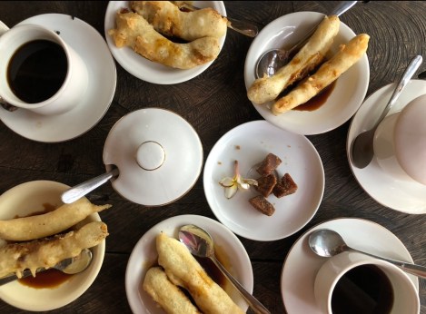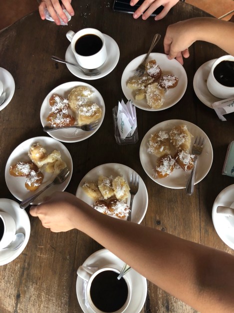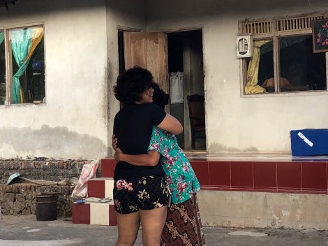 Buzzing with caffeine and bananas (again!), we left for Dede’s grandmother’s house. I wasn’t prepared to witness her aunt running out of the house to embrace her. None of us were. I felt everyone falling apart gently in the face of raw affection. Eva peered at me sadly from behind her glasses and told me she misses her grandmother. I suppose it’s the chilly atmosphere and the gamelan in the background again… everything felt softer, nostalgic. Dede, the budding doctor, sits atop the steps of her entrance and begins studying her relative’s conditions. Her fingers traced her grandmother’s pulse, her ears listening intently to her aunts breathing and chest falling. Her lips murmuring advices. I was touched deep in my heart.