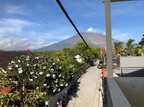 There were children knocking on the car windows selling local crackers, alongside the Balinese penjors which flocked the streets – an offering to Hyang Giri Pati, the God of the Mountain. The curved part symbolizing the home of the Gods, Mount Agung, the highest volcano on the island. It would be hilarious if the volcano erupted while I was frolicking stupidly on the island.