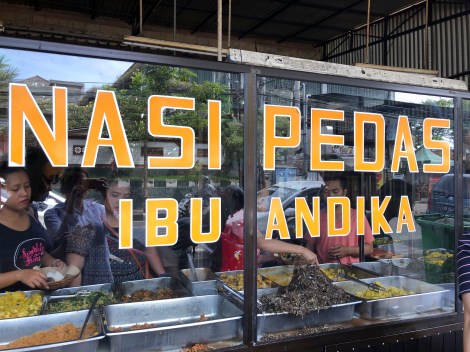 Eva, the Jakartanian promptly swats away Dede, the only local Balinese in our group (she so very lovingly chucked away my Bali book guides just minutes earlier) and took us to her favorite Nasi Pedas stall by Ibu Andika, which was placed alarmingly too close to the main road. As a budding doctor, I can see Dede’s darting eyes say: “Hmm, a bit ambitious, a bit too flavourful, a bit of a death wish”.