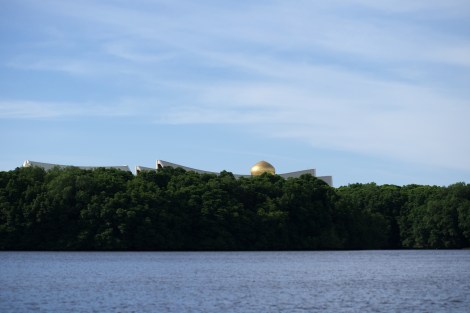 A glimpse at the seat of government: The gleaming dome atop Istana Nurul Iman peeks unassumingly through the foliage.