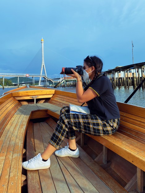 In quiet moments, the floating houses are reflected in the canal’s murky water, through which tangles of twigs, plastic fragments, and the occasional soiled diaper eddies never-endingly, leaving a trail of dirty foam suggestive of detergent soap. The air itself stings you – the fetid river breeze pierces one’s nostrils unforgivingly. It’s hard to describe: it is a mix of shrimp-paste, mud, decomposing fish and urine. A few men can be seen braving the stink, staking their fishing lines on the edge of their boats. Guffaws of laughter an endless noise from their end. I wave nonchalantly as we importantly hurried past, the river mist pooling on my face. I lick my lips for the full experience. River flavour.
