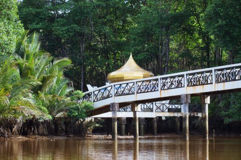 On the choppy wooden boat, I squint at the scenery through the lens of my camera, trying to not fall into water. The gleaming dome atop the royal palace peeks unassumingly through the foliage. Here, the seat of government is perched fittingly at a high point along the riverbank. It is a bold symbol in a city where height is an expression of status; a city where no buildings may erect higher than the capital mosque. For now, the shining dome only seem to worsen the heat. I fan myself with my hand, wiping the sweat rolling down my back and between my thighs. It’s a standard sticky day in the tropics. Across the riverbank, just a 29-second boat ride away, dilapidated floating houses of Kampong Ayer draw a breathtaking contrast. Come high tide or low, wet monsoon or dry, components of the scenery are non-negotiable: the mangroves, the king’s abode, and the olden houses a kind of archetype for the foundations of the Brunei world.