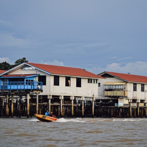 At the hub of the aquatic centre, sudden raucous rattles of timeworn engines shatter the muggy calm of day as boat operators call out and whistle to potential passengers. Painted on the sides of these boats, in a cheeky air of je ne sais quoi are the names: from Quicksilver, Yamaha Srirocco, to Stone Cold Crazy, Budak Nakal (naughty boy), alongside traditional female names, including Isabella and Noorasima. Local folks step gracefully onboard, some smartly dressed for work, side by side with uniformed students, their white attire reflecting sharply in the sun. Not to be dismissed (or dismissible in any case), shiny clad tourists, clambering clumsily onto the narrow boat landing. Mixtures of different dialects, language sift through the air. Splish splash, and further splashes – the acoustics of life here, a never-ending buzz.