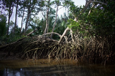 In pictures: a segment of the mangrove reclaimed to make way for residential housing on land; plastic bottles litter the inner banks of the river.